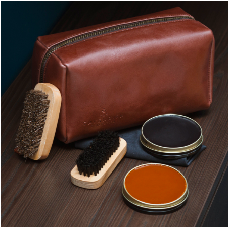 Give your shoes a shining with the Premium Butler Bag from Thumbs Up, your one stop shop for shoe cleaning. Measuring approx. 21 x 9.5 x 10.5cm there’s room for all the essentials, all housed in this super stylish, tailor made leather bag. Including Horse Bristle Brush and Pig Bristle Brush helps scrub away any dirt particularly in those hard to reach places, meanwhile the Black Polish, Brown Polish and Cloth will have your shoes looking as good as new in no time!
