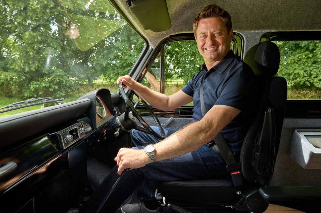 London, 5th July 2024. eBay, one of the UK’s largest online automotive marketplaces, will take part in Goodwood Festival of Speed’s iconic hillclimb for the first time at this year’s event. It will send its newly converted 1975 Mk1 Ford Transit up the famous Hill on Thursday 11th July with TV presenter and architect George Clarke behind the wheel.
