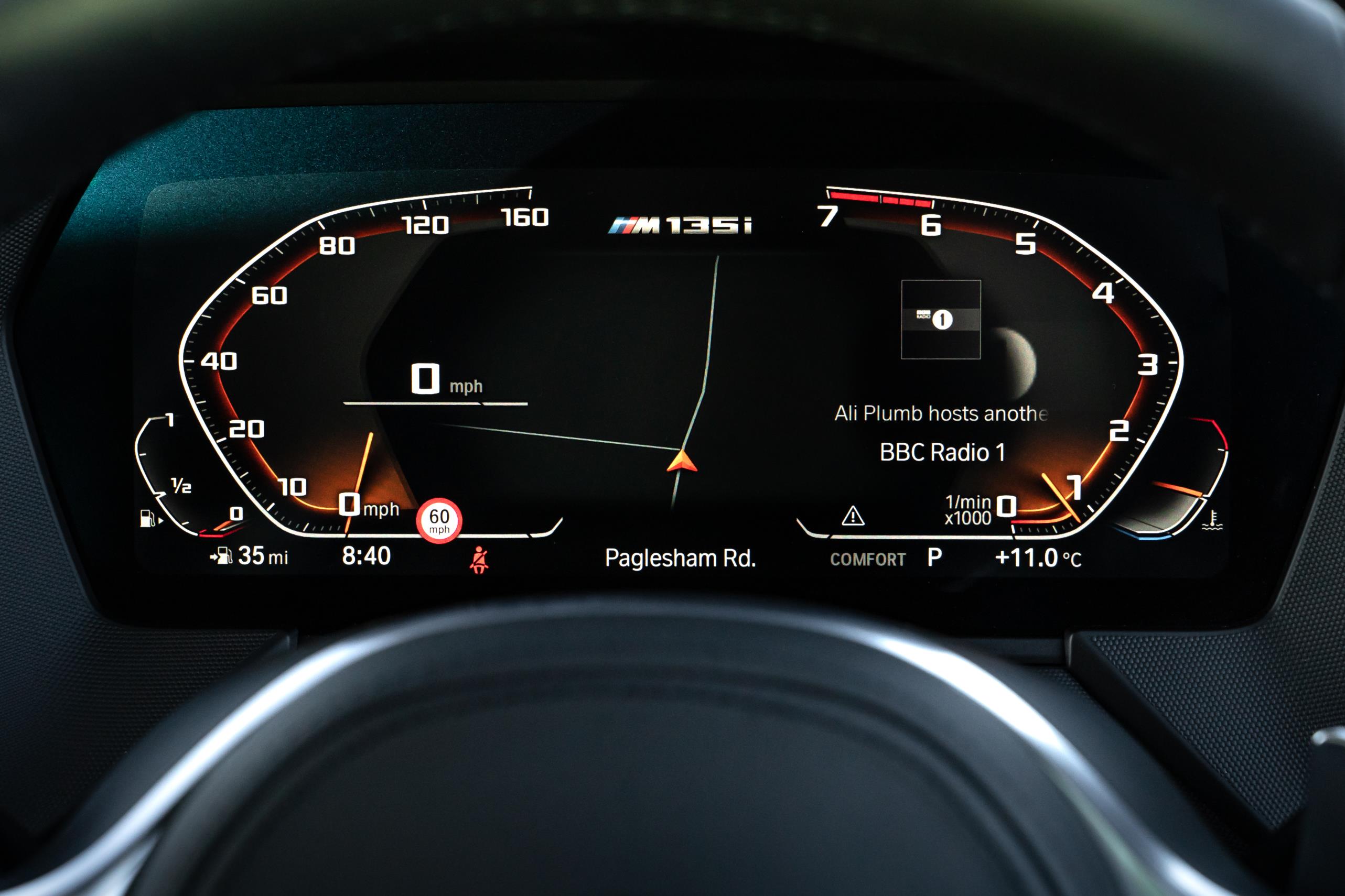 The BMW Live Cockpit Professional is standard on the M135i model and optional on all others. This includes a fully digital, customisable instrument display behind the steering wheel with a screen size of 10.25 inches coupled with a 10.25-inch Central Information Display. This equipment package also features an adaptive navigation system and a hard-drive-based multimedia system.
